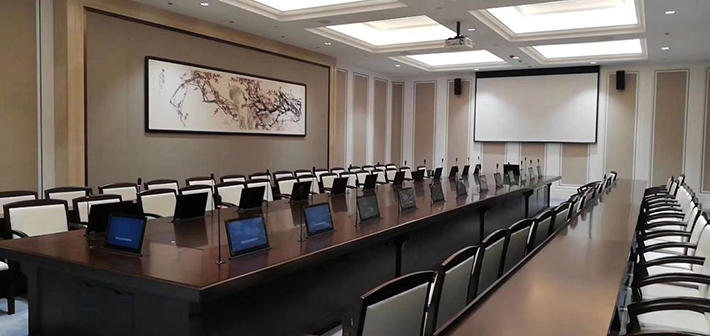 会议室扩声设计根据国家《厅堂扩声系统设计规范》标准设计,对每个会议室对声压级、混响、时间等重要指标反复测算,从而确保每一场会议的语言清晰度,保证会议质量。