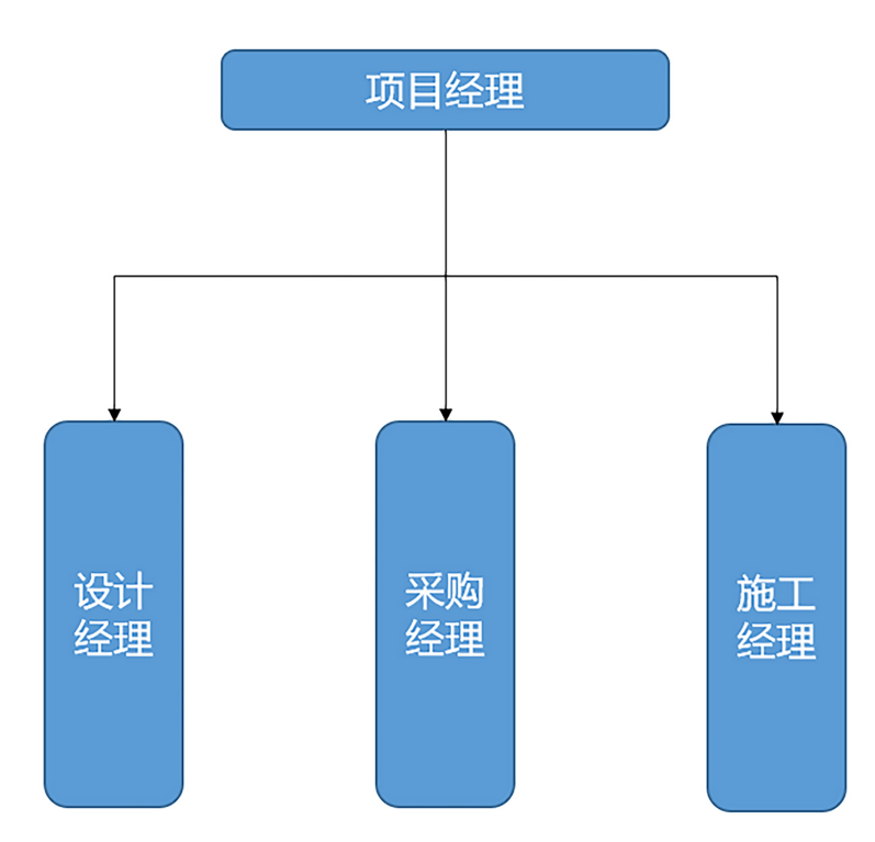 三、项目需求分析 本次建设范围是与公共资源交易紧密相关的受理区、开标区、评标区及其附属的答疑(询标、讲标)区、二次报价区、样品区、评委评审等待区(专用通道、评委餐厅、评委隔夜休息区),主要包含上述区域的信息交互系统、交易现场管理系统、支撑系统等。 各子系统使用身份认证系统验证使用人身份,与电子交易平台体系无缝双向传输数字信息,统一使用本地数据中心的安全防护、数字线路、存储空间。 智能化建设要满足电子交易平台体系的运行和业务流程中有关场地智能化要求。电子交易平台体系负责提供所有交易(服务、监管)的软件、信息、内容、业务流程、人员身份、人员权限、场所位置、时间、数据流转方式、数据存储需求等有关场地智能化运行的数据。 本次智能化建设的信息交互系统、交易现场管理系统、支撑系统及其各子系统负责执行电子交易平台体系发出的具体控制指令。 四、组织管理 根据项目的规模特点,公司成立了EPC总承包工程项目部,组织项目工程实施。 针对本次EPC项目的特质和公司管理流程的实际情况,公司任命一名项目经理,总管整个项目运行,再由公司设计院、采购部门、施工分公司分别派出设计经理、采购经理和施工经理配合项目经理推进项目施工。 工程总承包项目管理,实行以责、权、利、效为统一原则的项目经理责任制,对工程总承包项目的启动至收尾的整个过程的管理。 图3 项目组织架构图