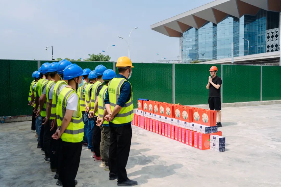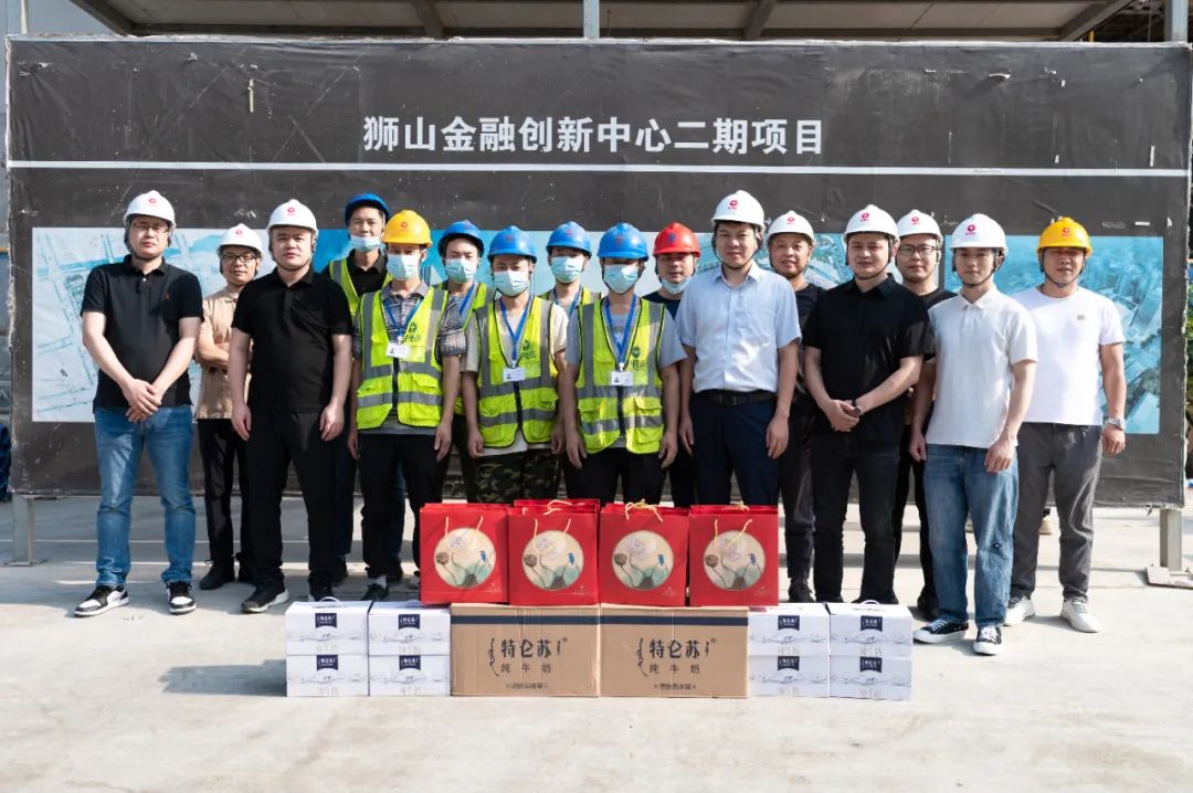 在苏州高新金融街项目,翁总、林总一行走访项目现场,为一线奋斗者送上了中秋佳节的问候与祝福,并发放了慰问品。