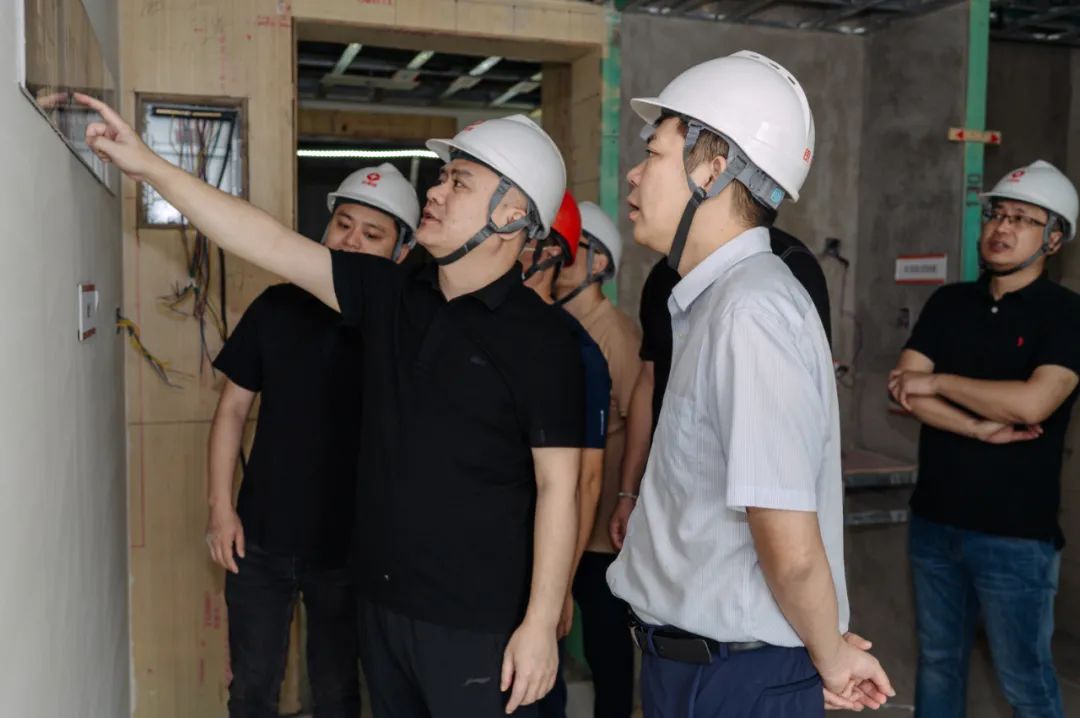 在新市民事务中心项目,直属工程一部总经理李宁宁慰问、关怀一线奋斗者的同时,深入现场调研,查看目前施工情况,聆听项目管理人员对于工程进展、技术难点、后勤保障等方面的汇报。