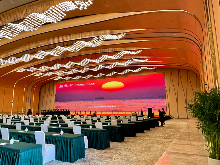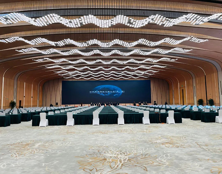 作为会议中心内最大的会议厅,配置240平方的LED显示屏,扩声系统参考国家一级标准进行设计,配备舒尔无线手持话筒及领夹话筒及797话筒系列,在3600㎡的会议厅内信号传输依然稳定可靠,同时可在平板终端一键式操控设备,让使用更加简单,满足各类国际性重要会议。