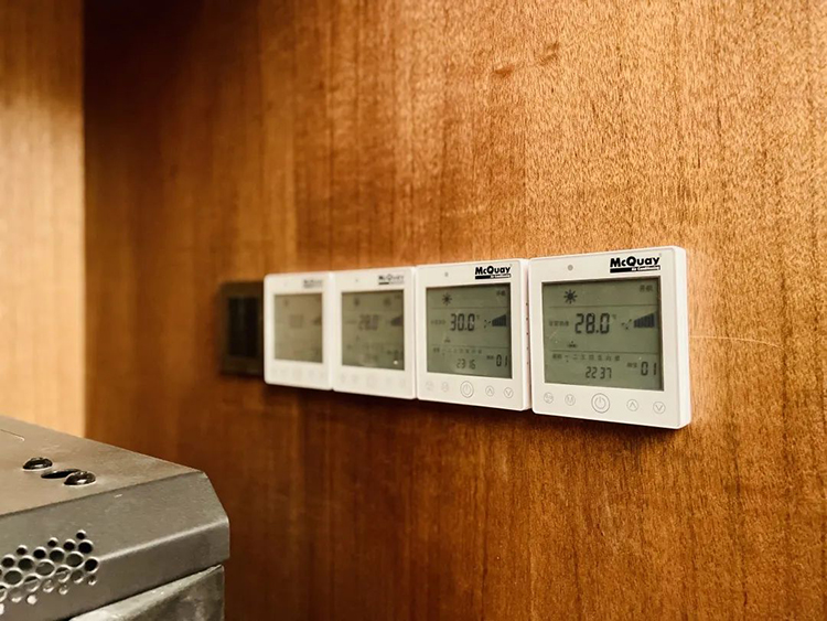 小会议室采用86寸会议平板一体机,支持触摸操作,自带安卓及Windows系统及摄像头,同时为了保证会议空间的整体性与美观度,会议室内的控制台、空调面板等均采用隐蔽式安装,简约优雅又不失大气。