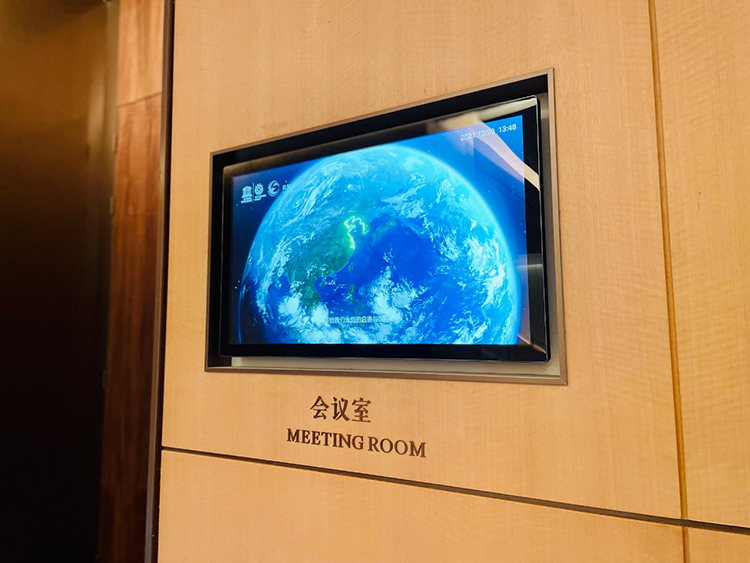 会议室的门口均配备了电子显示屏,用于发布会议介绍、宣传视频、温馨提示、公告通知等信息,为参会人员提供人性化的服务。此处采用的信息发布系统采用“分散控制,集中管理”的架构,支持多级、多区域、分权限管理和控制。