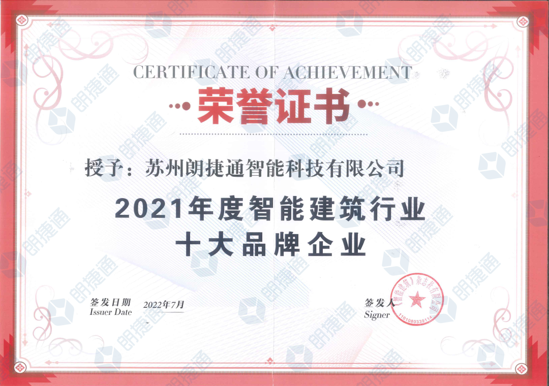 荣耀时刻 | 朗捷通荣获2021年度智能建筑行业十大品牌企业 |